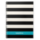 Hübsches Spiralnotebook mit breiten schwarzen und cremefarbenen Streifen und einem türkisfarbenen Akzent. Anpassen mit einem Namen, Monogramm oder Text Ihrer Wahl.