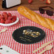 Feiern Sie einen großen Geburtstag mit diesen lustigen Papier-Tellern mit Goldballons für Glitzer-Party, Glitzern und eleganter Schriftzeichen-Kalligraphie. Spaß und Feiern - perfekt für jedes Geburtstagsfest. Teil einer Sammlung. Matching-Elemente verfügbar.