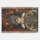 Schwarz, Gold und Rot sind die Grundfarben dieses modernen Hirsches und der von rote Rosen umgebenen Geweih. Perfekt zum Geschenken.