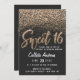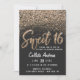 Dieses einzigartige und hübsche Sweet 16-Einladungs-Design bietet Imitate, die mit funkelnd Gold bedruckt sind, handgeschriebene Pinseltypografie und verstreuten Glitzer in einem ombre Farbverlauf auf einem schwarzen Hintergrund. Auf der Rückseite sieht man einen großen Chic, Glitzer Nummer 16. Dieses elegante, stilvolle und künstlerische Design ist perfekt für das moderne Geburtstagsmädchen. Machen Sie Pop und glänzen Sie mit dieser geistlichen und trendigen Option für Ihr Party. Klicken Sie auf den "Details"-Button, um ihn mit Ihren Informationen zu personalisieren. ***WICHTIGE HINWEIS FÜR DESIGN: Für individuelle Designanfragen, wie z.B. passende Produktanfragen, Farbänderungen, Platzierungsänderungen oder andere Änderungswünsche, klicken Sie bitte auf den "KONTAKT"-Button oder senden Sie eine E-Mail an den Designer direkt unter lafemme.art@gmail.com. Sie können ihr sogar eine Anfrage für ein komplett individuelles und neues Design schicken.