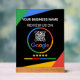 Fördern Sie Kundenfeedback und stärken Sie Ihre Online-Präsenz mit diesem eleganten und modernen Google-Review-QR-Code-Schild. Entworfen mit einem auffälligen schwarzen Hintergrund und lebendigen geometrischen Akzenten in Grün, Blau, Gelb und Rot, fällt dieses Schild auf. Es bietet Platz für "IHR UNTERNEHMENSNAME" und einen klaren Aufruf zum Handeln: "Bewerten Sie uns auf Google". Das integrierte Google-Logo und ein scannbarer QR-Code ermöglichen es Kunden, direkt von ihrem Handy aus eine Bewertung abzugeben. Darunter stellt eine Fünf-Sterne-Bewertung mit farbigen Balken die Kundenzufriedenheit visuell dar. Dieses Acryl-Schild ist ideal für jedes Unternehmen, das die Kundenbindung und seinen Online-Ruf verbessern möchte und dient als ständige Erinnerung für Kunden, ihre Erfahrungen zu teilen.