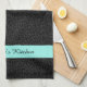 Ein elegantes schwarzes Tuch auf schwarzem Leopardenprint mit einem Aquaband. Dieses prächtige und schicke Tiermuster kann personalisiert werden, indem man den Namen einer modernen Frau hinzufügt.