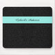 Ein elegantes schwarzes Mousepad mit schwarzem Leopardenprint mit einem Aquaband. Dieses prächtige und schicke Tiermuster kann personalisiert werden, indem man den Namen einer modernen Frau hinzufügt.