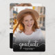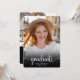 Feiern Sie den Absolventen stilvoll mit dieser schicken und modernen Abschluss-Einladung. Mit einem ganzseitigen Portrait auf der Vorderseite mit eleganter Schrift-Typografie behalte dieses Design es einfach und stilvoll. Der Rücken zeigt eine Collage von drei weiteren Fotos, die sich perfekt für besondere Momente eignen. Mit klaren Linien und einem zeitlosen, weißen Hintergrund ist diese Einladung ideal für Highschool oder Uni-Abschlüsse. Personalisieren Sie die Details, um es einzigartig zu machen! Weiß auf schwarz.