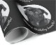 Ein lustiges Geschenkpapier für Hundefreunde, das Ihr Wunschbild in einem Kreis auf schwarzem Hintergrund zeigt, und einen skurrilen Script-Schriftart für "Happy Birthday" mit Ihrem Wunschnamen - oder einen anderen Text eingeben.
