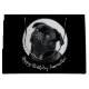 Eine lustige Geschenktasche für Hundeliebhaber, die Ihr Wunschbild in einem Kreis auf schwarzem Hintergrund und einen skurrilen Script-Schriftart für "Happy Birthday" mit Ihrem Wunschnamen präsentieren - oder einen anderen Text eingeben.