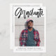Einfache und moderne Abschluss-Ankündigung Fotokarte mit einem handgeschriebenen Skript, das "Graduate" sagt. Ideal für Uni- oder Gymnasialabsolventen. Auf der Rückseite der Karte befindet sich ein 2. Bild zusammen mit Ihrer Nachricht.