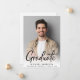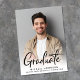 Moderne Ankündigung des Abschlusses mit dem Foto des Absolventen, überlagert mit "Graduate" in einer zeitgenössischen fett geschrieben. Fügen Sie ihren Namen, das Klassenjahr und die Schule in einfacher Typografie hinzu.