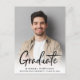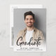 Moderne Ankündigung von Abschluss Postcard mit dem Foto des Absolventen überlagert mit "Graduate" in einer zeitgenössischen fett geschrieben. Fügen Sie ihren Namen, das Klassenjahr und die Schule in einfacher Typografie hinzu. Fügen Sie auf der Rückseite ein zusätzliches Foto und Ihre personalisierte Nachricht hinzu.