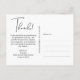 Danken Sie mit dieser Postkarte mit Ihrem Foto und vielen Dank in der schicken weißen Schrift auf der Vorderseite. Ihr individueller Dankeschön Notizen auf der Rückseite oder wenn Sie es vorziehen, Ihre Notiz handschreiben, löschen Sie einfach den Text, um Platz zu machen, um Ihre Nachricht zu schreiben.