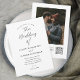 Modernes Script Schwarz und Weiß QR Code Einladung Hochzeit. Die Rückseite hat ein Foto (das Sie entfernen können) und zusätzliche Details mit UAWG QR-Code. Klicken Sie auf die Schaltfläche Bearbeiten, um dieses Design an Ihre Bedürfnisse anzupassen.
