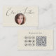 Dieses einfache und berufliche Design verfügt über eine elegante Skripttypografie, ein rundes Foto (ersetzen Sie es durch ein quadratisches Bild für beste Ergebnisse), viele Social Media Icons und einen QR-Code, um mit Ihrer Website, Ihrem Blog oder einem beliebigen Link zu personalisieren. Die Symbole der sozialen Medien können mithilfe des Designtools verschoben oder gelöscht werden.