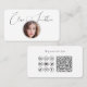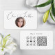 Dieses einfache und berufliche weiße Design verfügt über eine elegante Skripttypografie, ein rundes Foto (ersetzen Sie es durch ein quadratisches Bild für beste Ergebnisse), viele Social Media Icons und einen QR-Code, um mit Ihrer Website oder Ihrem Blog personalisieren. Die Symbole der sozialen Medien können mithilfe des Designtools verschoben oder gelöscht werden.