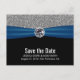 Moderner Silberner Glitzer Blauer Band Save the Da Ankündigungspostkarte