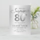 Moderne Shhh, es ist eine überraschende 80. Geburtstagsfeier Einladung mit stilvollem Drehbuch und Imitats Silber Glitzer Nummer 80 und Ihre Party-Details auf silberem Hintergrund, einfach und elegant, große Überraschung Erwachsenengeburtshöhe für Damen und Herren. Die schwarze Hintergrundfarbe kann in jede beliebige Farbe Ihrer Wahl geändert werden.