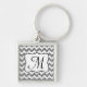 Moderner Silber-Glitzer Zickzack Zig Zag Stripe Monogram, erste Schlüsselkette