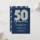 Elegante 50. Geburtstagspartei Silver Navy Glitzer Einladungsvorlage. Ideal für 50. Geburtstagspartys für Damen und Herren.