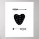 Dekorieren Sie Ihr wertvolles kleines Kinderzimmer mit diesem bezaubernden modernen Schwarz-Weiß-Skandininherz und Pfeilen-Poster. © Julie McIver