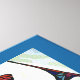 Abstrakte Grafik eines Skifahrers in kühnen, hellen Farben.