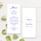 Dieses köstliche Hochzeitsmenü bietet einen skurrilen und spielerisch handgeschriebenen Script-Schriftart in atemberaubenden Blau-Tönen. Die perfekte Ergänzung zu jeder lustigen und lebendigen Hochzeitsfeier, kann dieses Menü auf Ihre persönlichen Vorlieben angepasst werden.