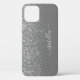 Modernes iPhone 12 Gehäuse in grauem und schlankem Glitzer, elegant mit dem Vornamen Ihres Drehbuchs geschmückt.