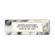 Rücksendeadressen-Aufkleber mit elegantem und modernem Marmormuster. Weißer, schwarzer und rauchiger grauer Marmor mit dünnen Bändern von Imitat-Gold-Wirbel im ganzen Muster. Ein Rechteck mit einem Imitat-vergoldeten Rahmen überlagert mit dem personalisierten Text im Inneren.