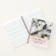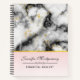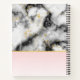 Spiralheft mit elegantem und modernem Marmormuster. Weißer, schwarzer und rauchiger grauer Marmor mit dünnen Bändern von Imitat-Gold-Wirbel im ganzen Muster. Ein hellrosa Farbverlauf unter dem marmorierten Muster.