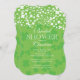 Moderne u. Spaß irische Kleeblatt-Brautparty-Einladung. Schöne Einladung für eines St Patrick TagesBrautparty, ein März-Brautparty oder einen themed Polterabend des irischen Klees. Unser stilvolles Brautparty laden Eigenschaften ein niedliches Feld des hübschen köstlichen weißen Kleeblatt-Sets auf einem zeitgenössischen dunkelgrünen Kleeblatt-Set auf einem hellgrünen Hintergrund ein. Drehen Sie unser hübsches Kleeblatt um, das Polterabend vorbei einladen, um eine zusammenpassende Rückseite zu finden.