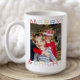 Diese lustige, festliche Tasse bietet eine bunte Typografie "Merry & Bright" Gruß und zwei vertikale Fotos. Die Typografie ist bunt, aber minimal. DESIGN TIPP: Sie können zwei verschiedene Fotos wählen oder sie gleich sein lassen.
