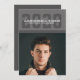 Moderne sportliche Bold Typografy Foto Abschluss Announcement Card. Feiern Sie den Absolvent mit dieser Einladungskarte für den sportlichen Foto-Abschluss. Alle Texte sind so vorbereitet, dass Sie sie einfach und schnell mit Ihren eigenen Details personalisieren können.