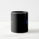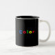 Moderner, mehrfarbiger Text auf schwarzer Tasse. Text kann personalisiert sein.