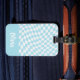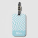 Vintage Gepäckmarke im Retrostil. Namensschild für Reisetasche, trendige Karo Muster Quadrate pastellblau ästhetische Farbe. Personalisieren Sie Text- und Designplatzierungen für ein individuelles Gepäckanhänger.