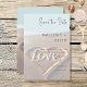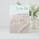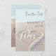 Diese Hochzeit speichern Sie die Dattelkarte Design ein einzigartiges Herz mit dem Wort Liebe im Sand eines Strandes mit der sanften Flut und blauen Himmel im Hintergrund geätzt. Die Vorderseite hat ein Vellum-Aussehen. So einzigartig! Es ist Teil des modernen Strandes mit der Heart Wedding Suite, die von Simply Farmhouse Press kreiert wurde.