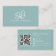 Moderner, stylischer Monogram QR Code Minimal Aqua Visitenkarte