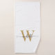 Girly Feminine Stilvoll Modern White and Gold Monogram Initial Name Signature Script Custom Personalisiert Bath Handtuch. Mit einem Vornamen (oder Familiennamen) in einem hübschen handgeschriebenen Stil Swash Schwanz Typografie (oder Kalligrafie) mit Monogramm Initial in Gold und Schwarz auf weißem Hintergrund. Große stilvolle feminine Hauswärmeschenke, auch zum Geburtstag, Junggeselinnen-Abschied, süße 16 Geburtstagsparty, Brautparty, Hochzeit, Muttertag, Jubiläumsgeschenk und für Graduiertenfeier. Es ist für das Mädchen, das stilvolle Eleganz liebt.