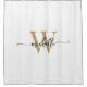 Stilvolle Girly Feminine Moderne White and Gold Monogram Initial Name Signature Script Custom Personalisiert Bad Dusche Vorhang. Mit einem Vornamen (oder Familiennamen) in einem hübschen handgeschriebenen Stil Swash Schwanz Schriftart Typografie (oder Kalligrafie) mit Monogramm Initial in Gold und Schwarz auf weißem Hintergrund. Große stilvolle feminine Hauswärmeschenke, auch zum Geburtstag, Brautparty, Jubiläum, Hochzeit, Junggeselinnen-Abschied und es ist für das Mädchen, das elegante Stilelemente mag.