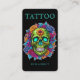 Professionelle Visitenkarte für Tätowierer mit einem auffälligen floralen Totenkopf-Tätowierungsdesign. Perfekt für Tätowierstudios, Tätowierer und Tätowier-Shops, die nach künstlerischer, moderner und auffallender Markenbildung suchen.