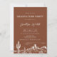 Moderner Terracotta Western Abschluss Einladung Moderner Terracotta Abschluss Einladung mit einem weißen Linien Western Wüstenbild und ein Foto auf der Rückseite.