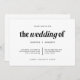 Diese hochmoderne, schwarz-weiße Hochzeitseinladung besticht durch fette Typografie mit einer Mischung aus klassischem und kursivem Serifentext. Die Rückseite der Einladung enthält einen scannbaren QR-Code, damit Ihre Gäste online UAWG und besuchen Sie Ihre Hochzeitswebsite. Ein schlichtes und elegantes Aussehen, das perfekt zu Ihrem modernen Hochzeitsstil passt.