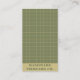 Visitenkartendesign mit tiefgrünem karierten Muster in einem sauberen, minimalen Layout, mit QR-Code für den schnellen Zugriff auf eine Website oder ein Portfolio. Geeignet für handgefertigte Bekleidungsmarken, Kreative oder Boutiquen.