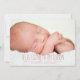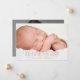 Dieses Design ist modern und schlicht elegant und besteht aus zwei großen Fotos Ihres kleinen Mädchens - einem vorne und einem hinten. An der Vorderseite befinden sich auch die wichtigen Geburtsinformationen und die Namen der Eltern. Zeitgenössische Schriftart tragen zum modernen Look bei.