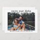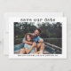 Moderner, trendiger Schreibmaschinentext Einfache Minimalistische Verlobung Hochzeitsankündigung Foto Rette unsere Date Card