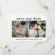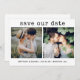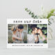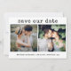 Moderner, trendiger Schreibmaschinentext Einfache Minimalistische Verlobung Hochzeitsankündigung 2 Foto Rette unsere Date Card