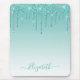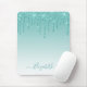 Moderne elegante und trendige Mouse Pad mit Aquamarinem Glitzer personalisiert mit Ihrem Namen. Stilvolles Skript. Glitzer mit Glitzern trinken.