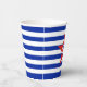 Moderner, tri-farbener Stern auf blau/weiß gestrei Pappbecher