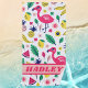 Modernes tropisches Summer Pink Flamingo Individuelle Name Badetuch