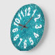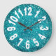 Moderner türkisblauer Glitzer Große Anzahl Wanduhr