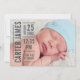 Die Geburtsankündigungskarte des Fotos verfügt über ein modernes Texteüberlagerungsformat mit dem Namen des Babys und den Geburtsdetails auf der Vorderseite. Eine Collage mit fünf (5) zusätzlichen neugeborenen Fotos ist auf der Kartenrückseite enthalten. Die dunkelschieferblaue / graue Textfarbe kann so angepasst werden, dass sie das Bild kontrastiert.