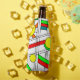 Diese Flasche cooler hat ein modernes Design aus der Mitte des Jahrhunderts mit schwarzen Linien und Kreise, die mit Primär- und Sekundärfarben gefüllt sind.