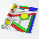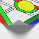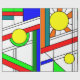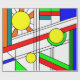 Dieses Verpackungspapier Mitte des Jahrhunderts moderne Design hat einen Buntglaslook mit schwarzen Linien und Kreise gefüllt mit Primär- und Sekundärfarben.